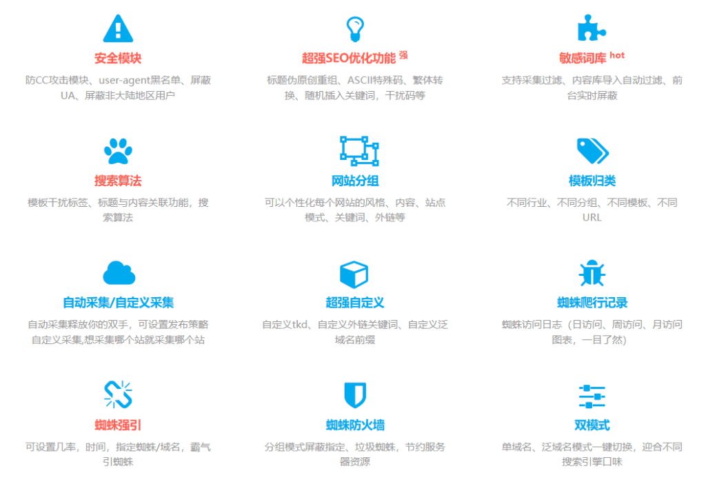 - 超好用后台管理:后台使用简单,轻松管理百万蜘蛛