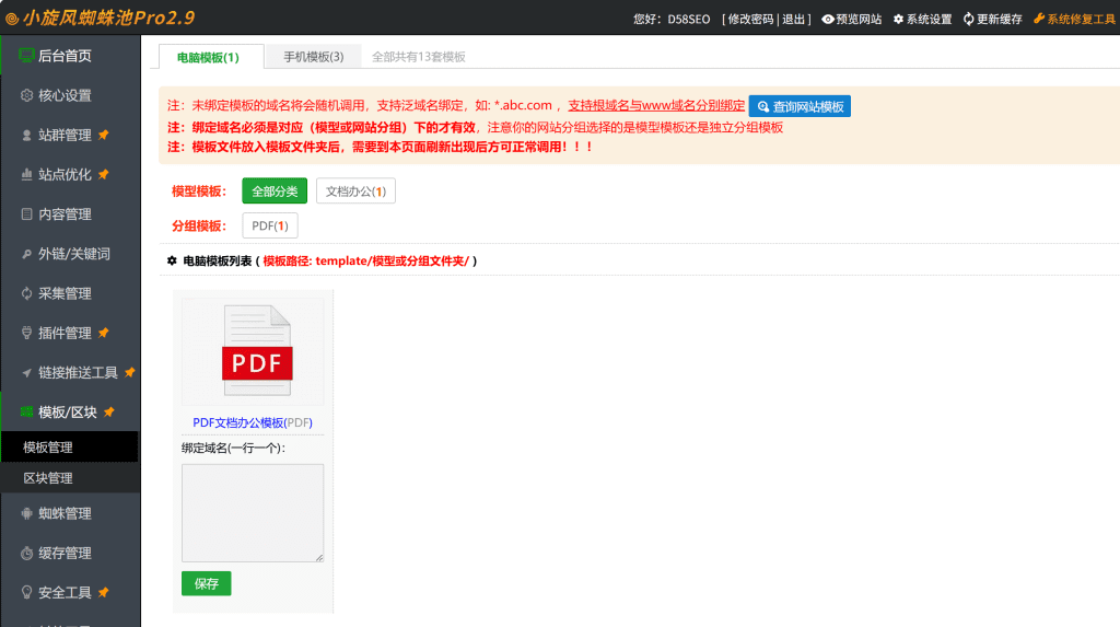 首页 / 最新站群程序 / PDF泛目录站群系统-秒速排seo内核-小旋风蜘蛛池内核